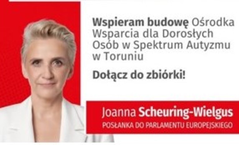 To jest rekomendacja posłanki do Parlamentu Europejskiego Joanny Scheuring-Wielgus. Posłanka wspiera i apeluje o udział w zbiórce funduszy na budowę domu – ośrodka dla osób dorosłych w spektrum autyzmu.