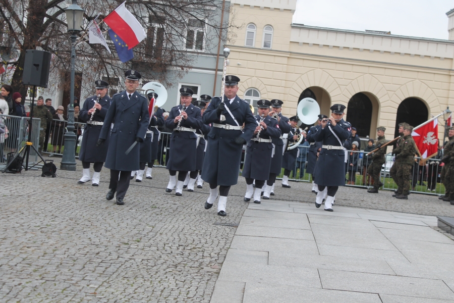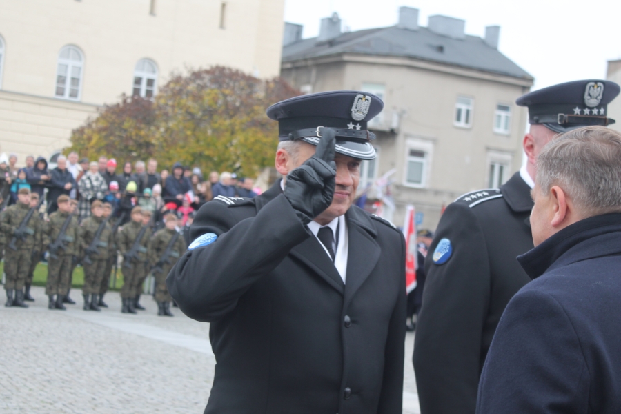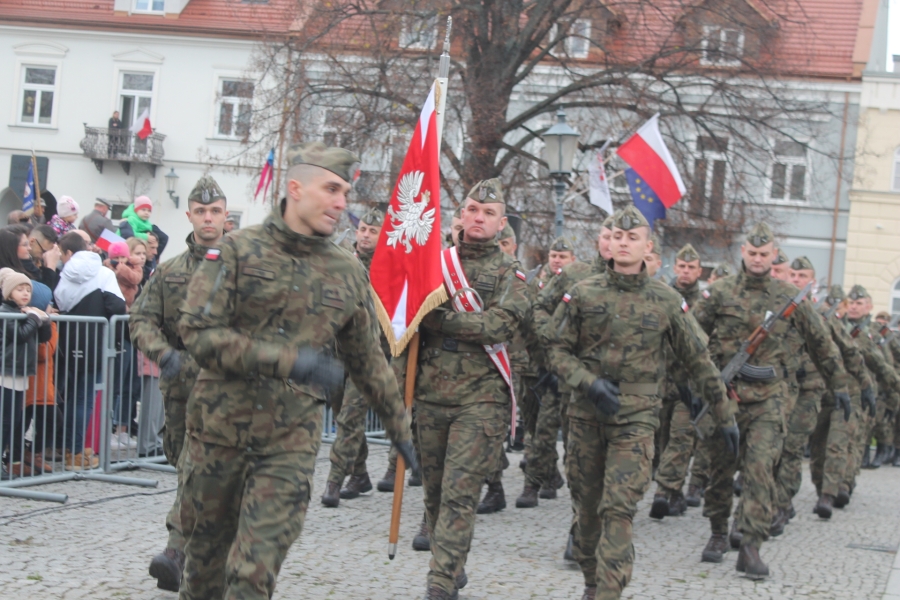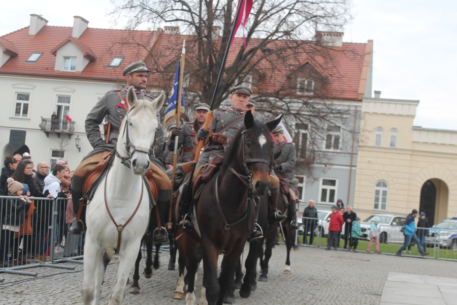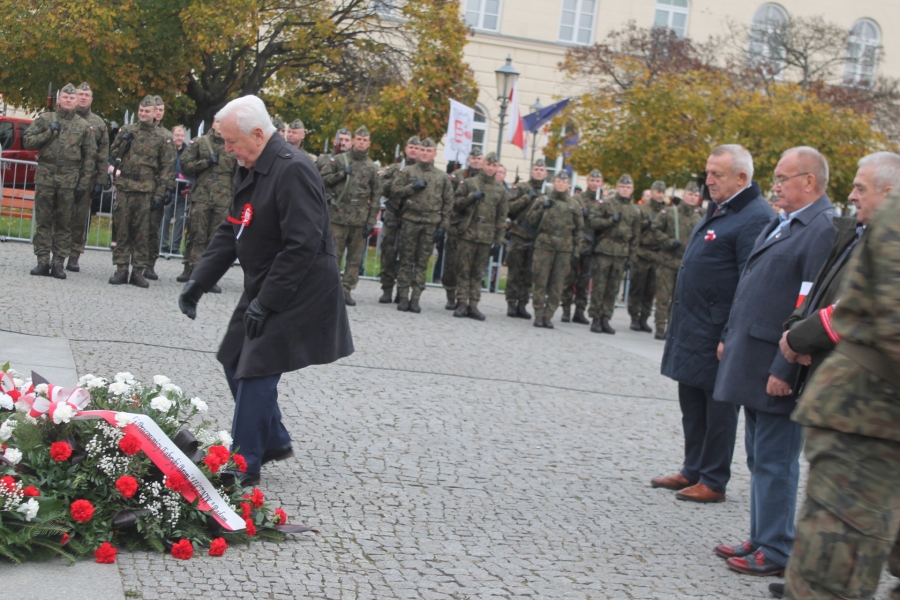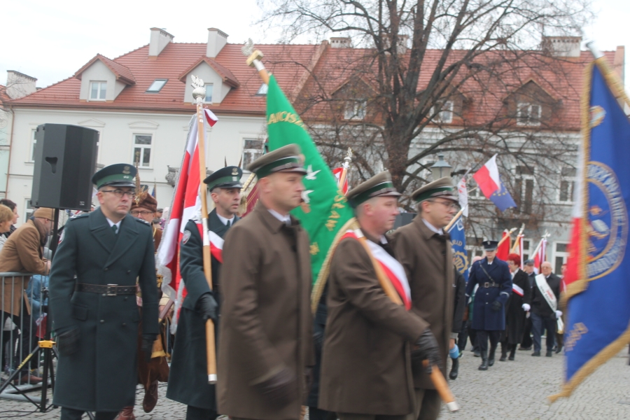 Goście i organizatorzy Święta Niepodległości,  nadający ton rocznicowej uroczystości , kontynuowanej na Rynku przy Pomniku Czynu Legionów Józefa Piłsudskiego,  akcentowali