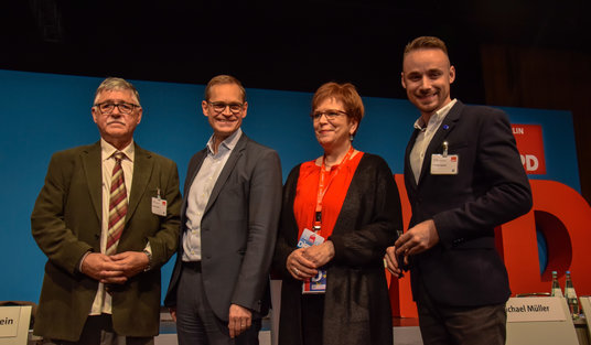 Berlińska organizacja partyjna SPD liczy ponad 20 000 towarzyszy. Przewodniczącym SPD Berlina jest Michael Müller, a jego zastępcą pełniącym obowiązki szefa frakcji SPD w Parlamencie Berlina Palestyńczyk z urodzenia Raed Saleh. Obaj przedstawiali perspektywy rozwoju Berlina. Chodziło o strategiczne decyzje w trosce o wększą sprawiedliwości: zwiększenie dochodów i ulżenie berlińczykom. W dyskusji nad programem SPD dążą do tego, aby siła ekonomiczna miasta dotarła do wszystkich berlińczyków.
